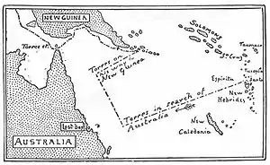 - ↑ Alan Villiers, The Coral Sea, Whittlesey House, 1949, p. 99.: "The second-in-command, or at any rate the commanding officer of the second ship, was a Portuguese pilot named Luis Vaz de Torres".