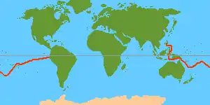 Torres then took a route close to the New Guinea coast to navigate the 150-kilometre (93 mi) strait that now bears his name. In 1980 the Queensland master mariner Captain Brett Hilder proposed that it was more likely that Torres took a southerly route through the nearby channel now called Endeavour Strait, on 2–3 October 1606.[18] From this position, he would certainly have seen Cape York, the northernmost extremity of Australia. According to 19th-century Australian writer George Collingridge, Torres "had discovered Australia without being aware of the fact".[19] However, Willem Janszoon had made several landfalls on the west coast of the Cape York Peninsula 7 to 8 months prior, while Torres never claimed that he had sighted the southern continent. "Here there are very large islands, and more to the south" he wrote.[12]