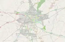 Lucknow stands at an elevation of approximately 123 metres (404 ft) above sea level. The city had an area of 402 km2 (155 square miles) until December 2019, when 88 villages were added to the municipal limits and the area increased to 631 km2 (244 square miles).[14] Bounded on the east by Barabanki, on the west by Unnao, on the south by Raebareli and in the north by Sitapur and Hardoi, Lucknow sits on the northwestern shore of the Gomti River. As of 2008, there were 110 wards in the city. Morphologically, three clear demarcations exist: The central business district, which is a fully built up area, comprises Hazratganj, Aminabad and Chowk. A middle zone surrounds the inner zone with concrete houses while the outer zone consists of villages.[15]