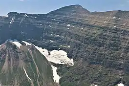Lupfer Glacier is in Glacier National Park in the U.S. state of Montana. The glacier is situated immediately to the east of Mount Phillips at an elevation between 6,500 ft (2,000 m) and 6,000 ft (1,800 m) above sea level.[3] Lupfer Glacier covers an area of approximately 16 acres (0.065 km2) and does not meet the threshold of 25 acres (0.10 km2) often cited as being the minimum size to qualify as an active glacier. Between 1966 and 2005 Lupfer Glacier lost over 50 percent of its surface area.[2]