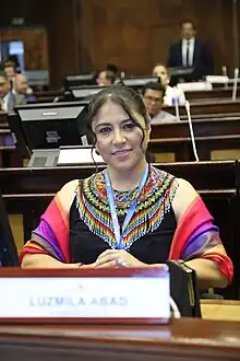 - ↑ "Delivery of letter of requests to assembly member Luzmila Abad – CONAGOPARE MORONA SANTIAGO" (in Spanish). 2023-09-15. Retrieved 2023-11-20.
