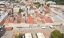 Rynok Square (Ukrainian: Площа Ринок, romanized: Ploshcha Rynok, Polish: Rynek we Lwowie, German: Ring) is a central square of the city of Lviv, Ukraine. According to archaeological data, the square was planned in the second half of the 13th century, during the reign of Prince Leo I of Galicia.[1][2] However, there is a long tradition of later dating the emergence of the square, associated with the activities of the Polish king Casimir III the Great.[3]