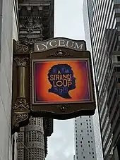 The Lyceum Theatre hosted numerous shows in the 2010s as well. These included Looped, The Scottsboro Boys, Venus in Fur, The Nance, The Realistic Joneses, Disgraced, The Visit, A View from the Bridge, Fully Committed, Oh, Hello, The Play That Goes Wrong, Be More Chill, and A Christmas Carol.[24][33] In addition, the NBC television series Smash used the theater in 2012 as the home of their fictional musical Bombshell.[231] The theater closed on March 12, 2020, due to the COVID-19 pandemic.[232] It reopened on October 11, 2021,[233] with Is This A Room and Dana H. playing in repertory.[234][235] Subsequently, A Strange Loop opened at the Lyceum in April 2022[236][237] and ran until January 2023.[238] This was followed in May 2023 by the play Grey House, which ran for two months.[239][240] The play My Son's a Queer...But What Can You Do? is expected to open at the Lyceum in March 2024 for a three-month run.[241][242]