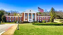 Southern's roots stem from the establishment of Graysville Academy in Graysville, Tennessee, in 1892,[10] in a part of the South much affected by the American Civil War. The area saw the battle of Chickamauga and the Chattanooga campaign, and was the staging ground for Sherman's Atlanta campaign.[11] The academy was privately funded at first, with no financial support from the Adventist church.[12] In 1897 it was renamed the Southern Industrial School and then Southern Training School in 1901. The school moved to the community of Thatcher's Switch in 1916, renaming it Collegedale.[13][14] In 1943, Kenneth A. Wright became president of the school.[15] During Wright's administration, Southern Junior College became accredited as a four-year college.[16] A new name, Southern Missionary College, was adopted in 1944, and Southern granted its first baccalaureate degrees two years later.[17][18] When the school became a university in 1996, the trustees voted on a new name: Southern Adventist University.[19]