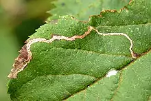 Lyonetia clerkella, Dolydd Hafren, Wales | |