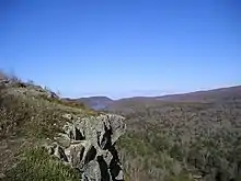 Porcupine Mountains State Park was established in 1944 to protect the last large stand of old-growth forest remaining in Michigan.[7][8] Then in 1972, Michigan passed the Wilderness and Natural areas Act. This act gave the park the new designation of the Porcupine Mountains Wilderness State Park. The facilities provided by the park include an extensive network of backcountry trails for hiking and backpacking, rustic trailside cabins, modern campgrounds, swimming and boating areas, and various interpretive programs led by park rangers. The North Country Trail passes through the park. In the winter, a ski area also operates within the park.[9] Because of the copper mining history of the park, it is a cooperating unit of Keweenaw National Historical Park.[10]