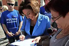 She announced her intention to take part in Civic Platform's presidential primaries to become party's candidate in the 2020 presidential elections in Poland.[9][10] The primary was organized by the party leader Grzegorz Schetyna following the decision by Donald Tusk not to run for president again as he lost in a runoff to Lech Kaczyński in 2005, and then served as Prime Minister of Poland from 2007 to 2014 after which he resigned to become President of the European Council. Prior to his withdrawal, Tusk was thought to be the presumptive nominee.[11] The voting took place during a special conference on 14 December. It was announced that she won those primaries (by receiving 345 electorate votes, compared to Jacek Jaśkowiak's 125 votes) and therefore she became Civic Platform's candidate for president.[12]