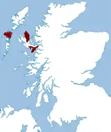 The Macdonalds of Sleat are a branch of Clan Donald — one of the largest Scottish clans.[9][10] The eponymous ancestor of Clan Donald is Domhnall, son of Raghnall, son of Somhairle.[11] Traditional Clan Donald genealogies, created in the later Middle Ages, give the clan a descent from various legendary Irish figures. Modern historians, however, distrust these traditional genealogies,[12] and consider Somhairle, son of Gille Brighde to be earliest ancestor for whom there is secure historical evidence.[13] Somhairle, himself, was a 12th-century leader, styled "king of the isles" and "king of Argyll";[14] yet there is no reliable account for his rise to power.[12]