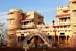 At the highest elevation in Madhav National Park, 484.0 m (1,587.9 ft), is the George Castle (Bankhade Kothi). In 1911, the local Scindia ruler Madho Rao Scindia built the castle in his hunting park for an overnight stay by King George V of the United Kingdom. George V had intended to go tiger shooting there during his visit to India. However, the king shot a tiger before getting there, and did not stop at George Castle afterall.[7][8] Although in some disrepair, it is a "turreted English-style castle, with Belgian glass windows and Italian tile flooring."[9]