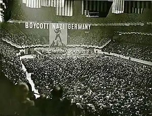 - On March 15, 1937, a massive "Boycott Nazi Germany" rally was held in the Garden, sponsored by the American Jewish Congress and the Jewish Labor Committee. John L. Lewis of the Congress of Industrial Organizations and New York City mayor Fiorello LaGuardia were among the speakers.[10]