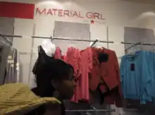 Sold exclusively at Macy's stores,[10] prior to the line, their New York department store created a section called Madonnaland in 1985. It was established to coincide with her Radio City Music Hall concerts as part of The Virgin Tour. They sold clothing and jewelry resembling those worn by the singer at the time and held a look-alike contest in the store. This look would later inspire the Material Girl collection.[3]