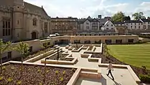 It was conceived as one side of a new "Great Quadrangle", and in anticipation of this the building's ends had been left unfinished. However, Holdsworth's full vision was never completed. The idea was revisited several times by later architects, including by architects James Wyatt—whose plans (never realised) included partially demolishing the existing, Medieval quad (the Cloister) and refinishing the neoclassical New Building in a Georgian Gothic style—and John Buckler.[30][39] In the 19th century, John Nash and Humphrey Repton both submitted designs for new, open quadrangles that incorporated the New Building.[30]