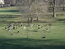 The Grove or deer park is a large meadow which occupies most of the north west of the college's grounds, from the New Building and the Grove Buildings to Holywell Ford. During the winter and spring, it is the home of a herd of fallow deer. It is possible to view the meadow and the deer from the path between New Buildings and Grove Quad, and also from the archway in New Buildings.
