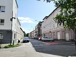 Maksymiliana Jackowskiego street is a 500 metres (1,600 ft) long path in the north-west area of Bydgoszcz, Poland. Located near the Brda river, its frontages display a variety of architectural styles, from eclectic to early modernist.
