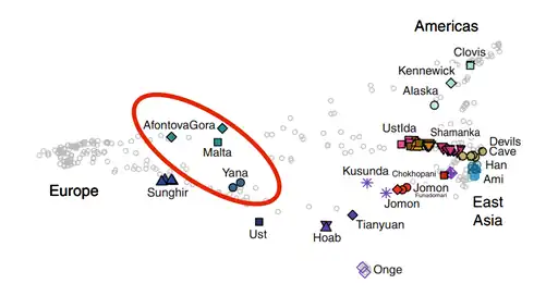 MA1 is also related to two older Upper Paleolithic Siberian individuals found at the Yana Rhinoceros Horn Site called Ancient North Siberians (ANS).[31]