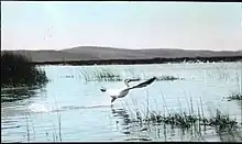 The remarkable abundance and diversity of bird life within the pre-irrigation Malheur region was first described by Charles Bendire in the middle 1870s.[9][10] Beginning in the late 1880s, the area's bird populations were devastated by the actions of plume hunters who harvested the showy feathers of Malheur's waterfowl for use as hat ornaments.[11][12] In 1908, wildlife photographers William L. Finley and Herman Bohlman documented the area's unusual diversity of birds, as well as the detrimental impacts of plume hunting.[11][13] Finley used photographs to personally lobby President Theodore Roosevelt for federal protection of the region.[14]