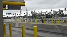 The busway platforms are accessed from two ground-level plazas on the north and south sides of East Manchester Avenue between South Figueroa Street and South Broadway or a pedestrian bridge from the east park and ride lot. The ground-level plazas each have a Transit Access Pass (TAP) ticket vending machine that was added in early 2017 to support all-door boarding on the J Line.[3] The station has 247 park and ride spaces in two parking lots built into the "leaves" of the partial cloverleaf interchange between Manchester Avenue and Interstate 110.[4]