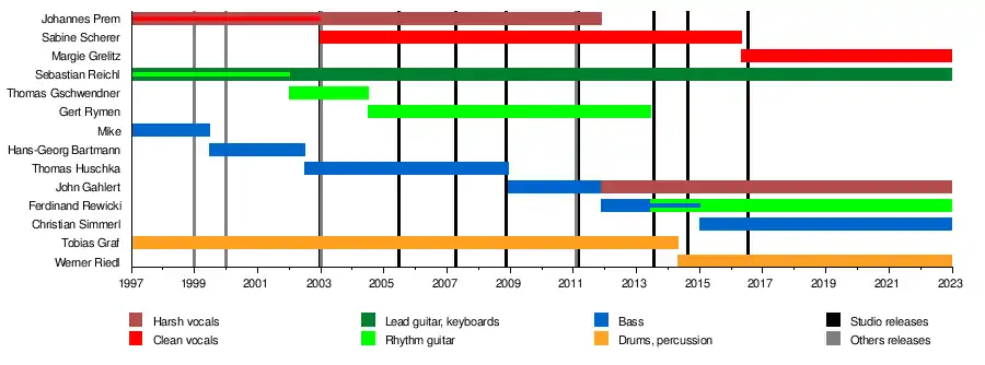 April 28, 2014, it was announced via the band's Facebook page that Tobias Graf had departed the band, leaving Sebastian Reichl as the only remaining original member. On September 4 it was revealed that Graf had died at the age of 35.[5]