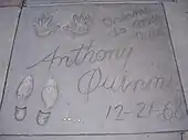 Nearly 200 Hollywood celebrity handprints, footprints, and autographs are in the concrete of the theater's forecourt. Fairbanks and Pickford were the first, done on April 30, 1927.[27]