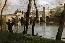 At the end of the 19th century, Impressionist painters like Pierre-Auguste Renoir, Édouard Manet and Claude Monet came to paint the Seine River which crosses the town. Jean Batiste Corot painting of the Old Mantes bridge is shown at the Louvres