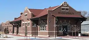 The Santa Fe Railway Monzanola Depot, also known as Manzanola station, was an Atchison, Topeka and Santa Fe Railway in Manzanola, Colorado. Now used as a town hall, the property has been on the National Register of Historic Places since April 28, 2004.[4][5]