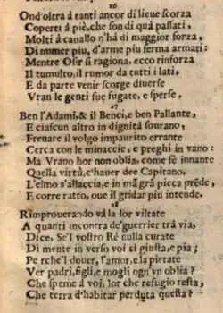 The Scanderbeide, inspired by the exploits of the Albanian freedom fighter Scanderbeg, was published in Rome by Lepido Faci in 1606, incomplete (eleven cantos out of the intended twenty-four) and with many errors. It did not appear again until 1623, when it was published, posthumously, in Rome, for Andrea Fei, in twenty-three cantos, in an almost complete state.[2][7]