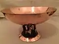 The influence of the Bauhaus school is evident in Tevan's early work. She then continued her artistic development towards an archaic romanticism, influenced by Romanesque art and the simplicity of the motifs which she used, especially in her friezes which decorate her boxes and plates. Many of the objects which she produced were hand-hammered silver-leafed copper.[3]
