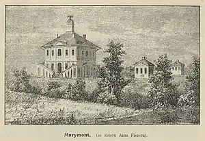 Both August II and his son, king Augustus III of Poland, regularly used Mariemont as a hunting lodge for trips into the Bielański forest and the Kampinos forest.[1][2][3] The hunting trips could take up to two days with more than five thousand participants.[3] In a hunting trip at Mariemont in 1724 around 700 aristocrats participated, around 200 hunters, and 4,000 peasants who helped as drivers).[3] When Stanisław August Poniatowski became king of Poland in 1764, Mariemont palace remained in the possession of the Saxon Electors.[3] They leases the palace out to various users, such as the English ambassador.[3] After the Third Partition of Poland in 1795, they sold all their possessions to Prussia.[3]