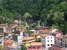 The railway, projected in 1866, was inaugurated in 1876 and was connected to the pre-existent Avenza-Carrara railway (1866),[2] linking the main station of Carrara Avenza to Carrara San Martino, in city centre.[3] A subsequent expansion to the quarries below the Apuan Alps (Gioia, Ravaccione-Polvaccio and Colonnata) was proposed in 1885. Work began in 1887 and the new branch was inaugurated on 15 May 1890.[4][5] The line was owned by the FMC (Società Ferrovia Marmifera Privata di Carrara) and operated by the SFAI (Società per le strade ferrate dell'Alta Italia).[6]