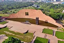 In memory of those killed, a memorial known as the Martyred Intellectuals Memorial (Badhya Bhumi Smriti Soudha) was built at Rayer Bazaar,[11] Mohammadpur Thana in Dhaka, in 1996–99.[12] The memorial was designed by architect Farid U Ahmed and Jami Al Shafi.[13][14] The initial proposal for a memorial at Rayer Bazar was brought forward by Projonmo 71 (organisation of the children of the martyrs of liberation war), who also laid a temporary foundation stone in 1991.
