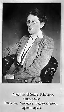 Mary Darby Sturge (16 October 1865 – 14 March 1925) was a British medical doctor, known for her pioneering work with alcoholism and championing the importance of preventative medical care. She is credited as being the second woman doctor in Birmingham and was President of the Medical Women's Federation from 1920 to 1922.
