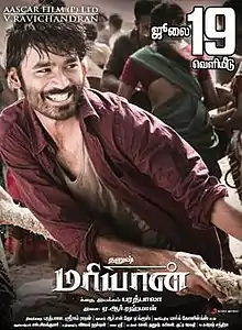 Maryan (pronounced Mariyāņ; transl. Immortal) is a 2013 Indian Tamil-language drama film[1] directed by Bharat Bala, and produced by V. Ravichandran, under the banner Aascar Films, starring Dhanush and Parvathy Thiruvothu.[2] The film has music and background score composed by A. R. Rahman;[3] cinematography and editing were done by Marc Koninckx and Vivek Harshan respectively.[4] The dialogues in the film were penned by Joe D' Cruz. Oscar-award winner Resul Pookutty was the sound designer of the film. Maryan is an emotional journey of a common man to an unknown place with the hope to come home and lead a better life.[5] The film's title represents the character as "a man who never dies".[6]