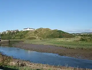 On Castle Hill are the earthworks and buried remains of a 12th-century motte-and-bailey castle. On the summit are the foundations of a World War II gun emplacement.[7]