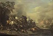 Marzio Masturzo (fl. 17th century) was an Italian painter of the Baroque period, active near his natal city of Naples. He was a pupil of Paolo Greco, then, along with Salvatore Rosa, a fellow-pupil of Aniello Falcone. Like Falcone, he often painted battle scenes. He appears to have joined during the Masaniello revolt, a loose fraternity of artists called the Compagnia della morte involved in the rebellion.