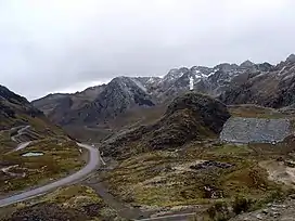 Matagaga in the background (center-right) as seen from the road above Querococha