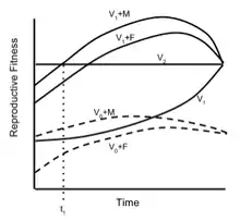 - V1: reproductive success obtained when only one parent cares for the young (for the purpose of simplicity, model assumes that V1 is the same for both male-only and female-only care)