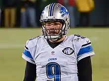 As the Lions' primary starter from 2009 to 2020, Stafford had a breakout year in 2011 where he became only the fourth quarterback in NFL history to throw for more than 5,000 yards in a single season, while also leading Detroit to their first playoff appearance since 1999. He led the Lions to two further playoff runs in 2014 and 2016, earning himself Pro Bowl honors during the former and setting an NFL season record for most comeback wins in the latter. After mutually agreeing to part ways with the Lions, Stafford was traded to the Rams in 2021 and led them to victory in Super Bowl LVI.[5]