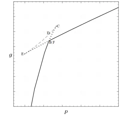 This is a rendition of the figure in the James Clerk-Maxwell paper in Nature.The portion of the curve from C to E represents points which are essentially unstable, and which cannot therefore be realized.
