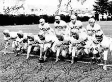 The 1951 University of San Francisco Dons football team, coached by Joe Kuharich, went undefeated with a record of 9–0, and produced nine future NFL players. Five became NFL Pro-Bowlers, and Gino Marchetti, Ollie Matson, and Bob St. Clair later were inducted into the Pro Football Hall of Fame – a record for one college team. Also the team's Burl Toler became the first African American official in the NFL.[70] Future NFL Commissioner Pete Rozelle played a role as the Dons' Athletic Publicist. At the height of their success, due to the team having two African-American star players, Ollie Matson and Burl Toler, they were not invited to play in any of the college football bowl games hosted by the SEC (Southeastern Conference).[71] The team, less Toler and Matson, was invited to the Orange Bowl but declined. Guard Dick Columbini said, "'No, we're not going to leave ‘em at home’ ... ‘We're going to play with ‘em or we’re not going to play.’"[70] The USF Athletic Department was forced to drop its football program in 1952, due to a deficit in department funds.