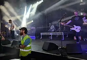 ![]() Mclusky at 2000trees Festival in July 2022, (l-r) Falkous, Egglestone, Sayell | |
