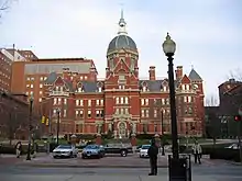 Johns Hopkins Children's Center (JHCC) is a nationally ranked, pediatric acute care children's teaching hospital located in Baltimore, Maryland, adjacent to Johns Hopkins Hospital. The hospital has 196 pediatric beds[37] and is affiliated the Johns Hopkins School of Medicine.[38] The hospital is the flagship pediatric member of Johns Hopkins Medicine and is 1 of 2 children's hospital in the network. The hospital provides comprehensive pediatric specialties and subspecialties to infants, children, teens, and young adults aged 0–21[39][40][41] throughout Baltimore and the wider United States. Johns Hopkins Children's Center also sometimes treats adults that require pediatric care.[42] Johns Hopkins Children's Center also features one of the only ACS verified Level 1 Pediatric Trauma Centers in the state.[43] The hospital is directly attached to Johns Hopkins Hospital and is situated near the Ronald McDonald House of Maryland.[44]