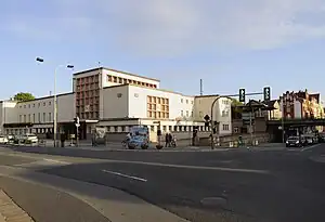 Meißen station is the largest railway station in the town of Meissen in the German state of Saxony. The station was opened in 1860 in the district of Cölln. Its entrance building, which was built in 1928, is a heritage-listed building and along with the Stuttgart Hauptbahnhof it is considered an architecturally significant transport complex of the interwar period.[3] After the ending of long-distance traffic in the 1960s, the station is now a station of the Dresden S-Bahn with only regional significance.