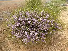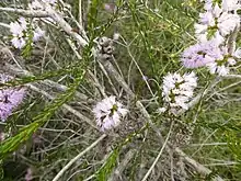 Melaleuca glaberrima is a plant in the myrtle family, Myrtaceae and is endemic to the south-west of Western Australia. It is a dense, spreading shrub with needle shaped, but not sharp leaves and profuse pink or mauve flowers.