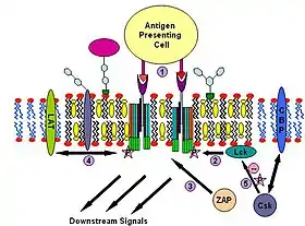 - 1 2 Janes, Peter W.; Ley, Steven C.; Magee, Anthony I.; Kabouridis, Panagiotis S. (2000). "The role of lipid rafts in T cell antigen receptor (TCR) signalling". Seminars in Immunology. 12 (1): 23–34. doi:10.1006/smim.2000.0204. PMID 10723795.
