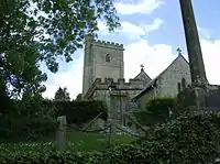 The village has a 13th-century church, dedicated to St John the Baptist, with a tall slim tower.[2] In the aisle there is a monument to Sir Shilston Calmady, who was killed in a skirmish near the village in February 1646, and was buried in the chancel. The founding editor of the medical journal, The Lancet, Thomas Wakley, was born at Membury in 1795.