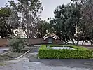 The grounds of Memorial Cross Park are landscaped with oleander and olives, and adobe perimeter walls similar to early mission days bound the site.[26] Low-maintenance grass was installed along the street edge in 2018.[27]