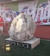 In 2005, head football coach Terry Hoeppner had a southern Indiana limestone boulder, nicknamed "The Rock", installed in the north end zone as a new campus tradition. This limestone boulder was found prior to Hoeppner's first season at IU in the practice field. It was removed, put on a granite slab and moved to the stadium. The Hoosiers and coach Hoeppner walked out and touched the Rock before running onto the field at every home game during Hoeppner's time as head coach (a tradition that continues today). Terry Hoeppner died of brain cancer on June 19, 2007, and The Rock (renamed "Hep's Rock" during a ceremony with the Hoeppner family on November 6, 2010) now serves as motivation for the team as well as a tribute to Hoeppner's influence on the football program.