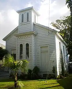 Memory Chapel is a Los Angeles Historic-Cultural Monument (HCM #155) located in the Wilmington section of Los Angeles, California, near the Port of Los Angeles. Built in 1870 in the Carpenter Gothic Victorian architecture style, it is the oldest Protestant church in the Harbor area. Originally located at "F" Street and Marine Avenue, it was moved to its present location in 1939.[2] In 1946, the chapel was designated as a historical landmark under auspices of the Wilmington Parlor No. 278, Native Daughters of the Golden West.[3]