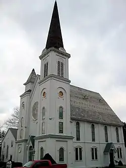 Methodist Episcopal Church is a historic Methodist Episcopal church located at Dryden in Tompkins County, New York. It is a 2+1⁄2-story frame church structure built in 1874 in the Romanesque Revival style. It is located at the northeast corner of the "four corners" main intersection and, with its towering spire, serves as a focal point and community landmark.[2]