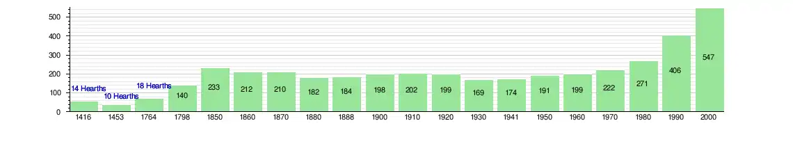 As of 2000, there were 240 private households in the municipality, and an average of 2.2 persons per household.[9] There were 77 households that consist of only one person and 11 households with five or more people. Out of a total of 244 households that answered this question, 31.6% were households made up of just one person. Of the rest of the households, there are 78 married couples without children, 74 married couples with children There were 4 single parents with a child or children. There were 7 households that were made up of unrelated people and 4 households that were made up of some sort of institution or another collective housing.[10]